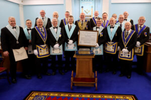 He has commissioned cufflinks and a firing glass to mark this special occasion – proceeds from which will go towards charity. “Throughout the year I will be continuing my charitable work mainly towards the Masonic Teddies for Loving Care and Great North Air Ambulance charities. Another commitment I have made is to call 2023 / 24 ‘Double Two’ as I am determined to bring in 2 new members for initiation and have 2 social events to ensure that having fun remains top of our agenda. In that way, together with our new members, we will keep the Huntcliff story going for the next hundred years”.